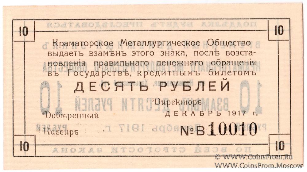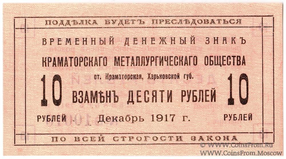 10 рублей 1917 г. (Краматорск)