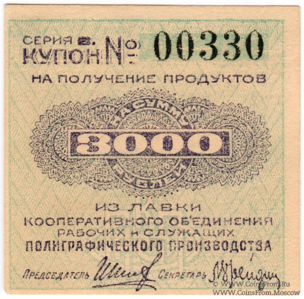 Купон без даты. Кооперативное Объединение рабочих и служащих полиграфического производства.