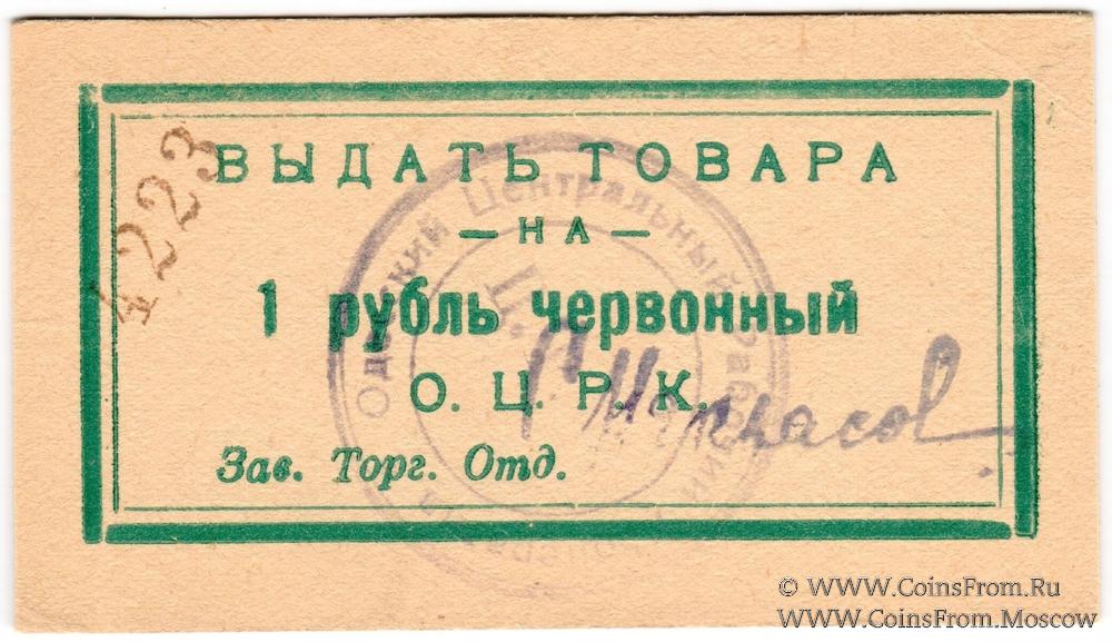В червонных рублях без даты (1923 г.) на тонком картоне. Одесский Центральный Рабочий Кооператив (О.Ц.Р.К.).