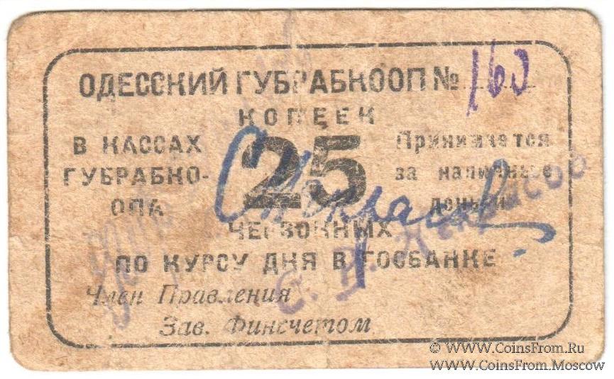 Печать круглая: "ПРАВЛЕНИЕ" (по центру) / "Одесский Губернск. Союз Рабочей и Городской Кооперации" (по кругу).