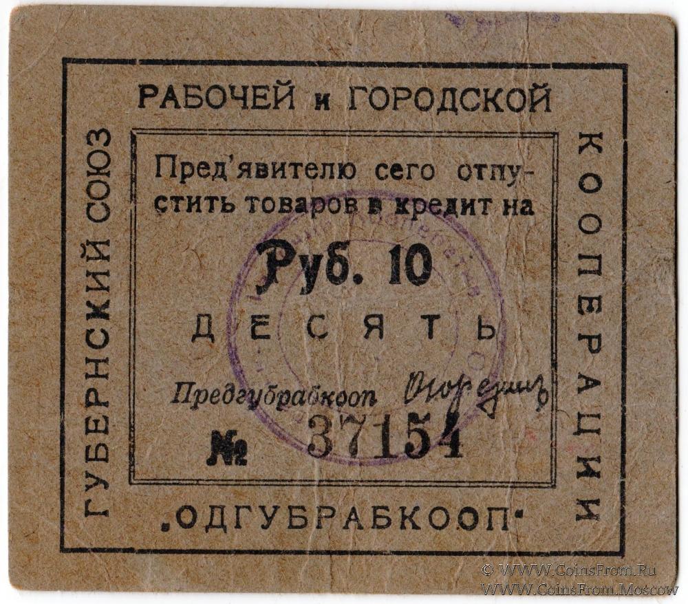 Печать на аверсе "Одесский Ц.Р.К.". Одесский Губернский Союз Рабочей и Городской Кооперации "ОДГУБРАБКООП"