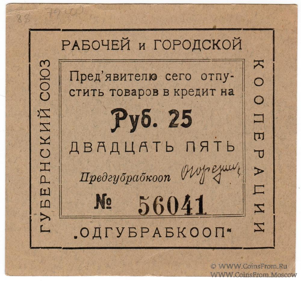Бланк. Без печати. Одесский Губернский Союз Рабочей и Городской Кооперации "ОДГУБРАБКООП"