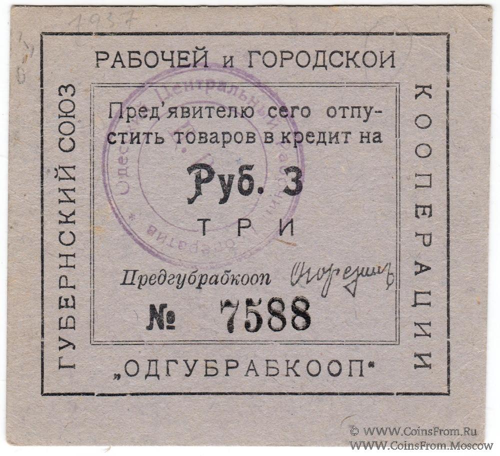 Печать на аверсе "Одесский Ц.Р.К.". Одесский Губернский Союз Рабочей и Городской Кооперации "ОДГУБРАБКООП"