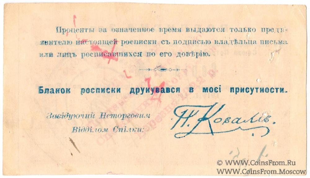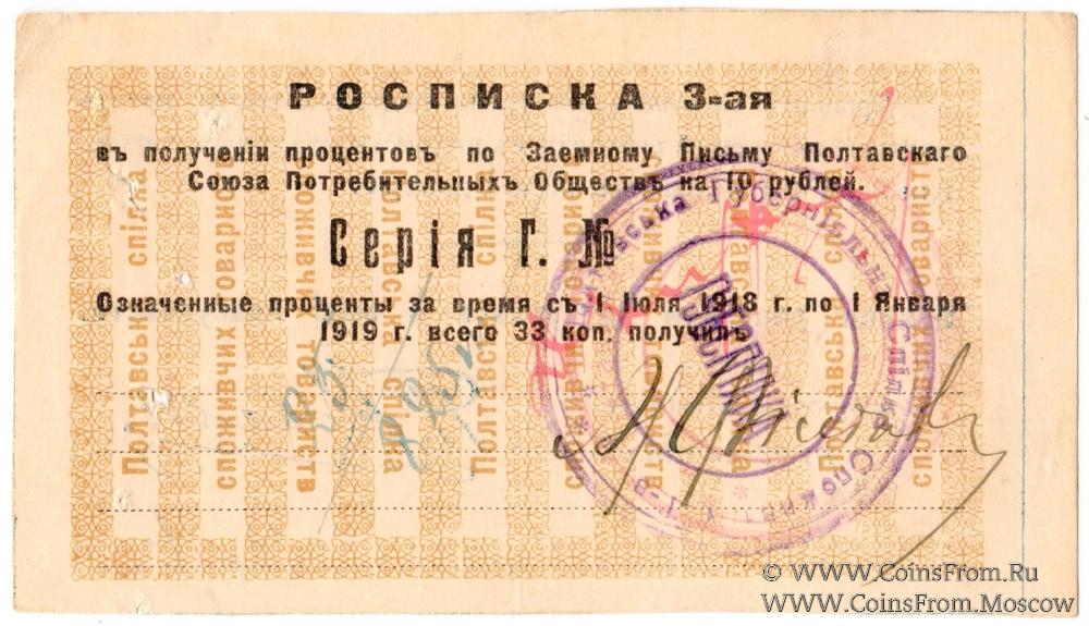 Печать круглая: "ГУБСПIЛКА" (по центру) / "Полтавська Губернiяльна Спiлка Споживчив Т-в (Товариств) *** " (по кругу). (ГУБСОЮЗ / Полтавский Губернский Союз Потребительских Обществ).