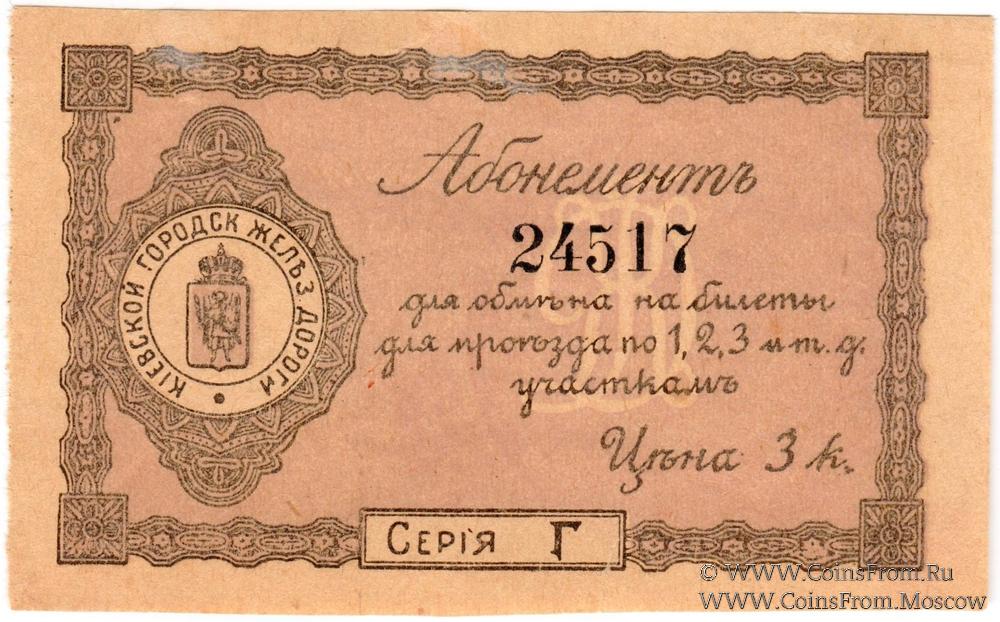 Абонемент без даты. На реверсе печать Правления, штамп "20" (четыре раза). Киевская Городская железная дорога.
