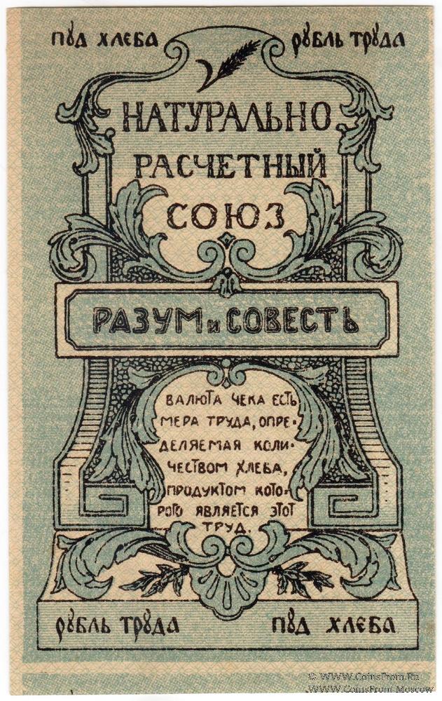 Натурально-расчетный знак. Номер 4-значный. Одна литера в номере. Натурально-Расчетный Союз "Разум и Совесть".