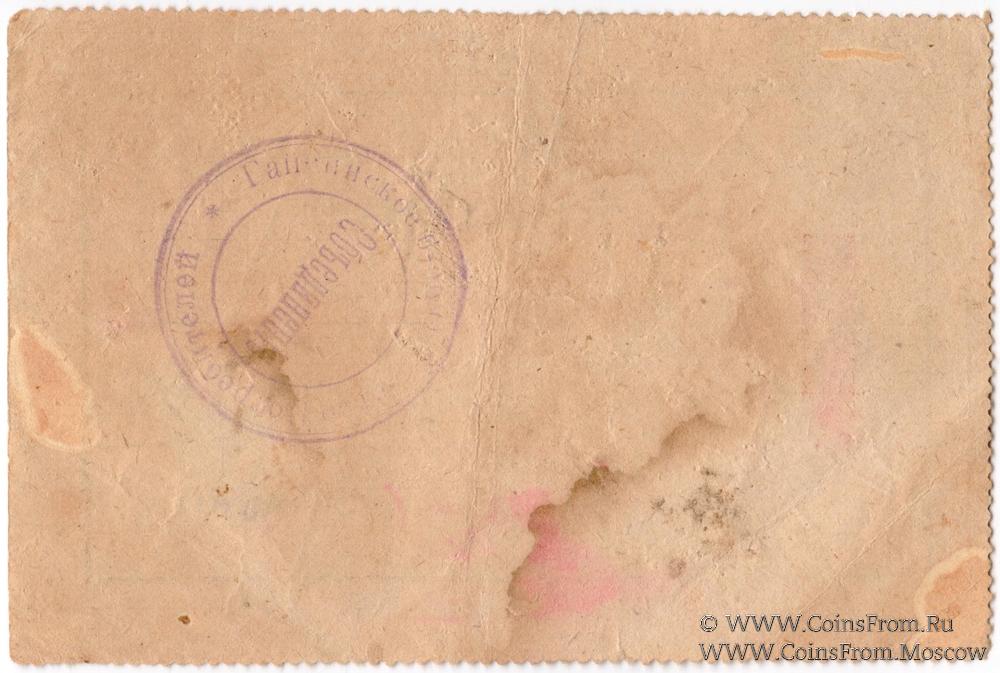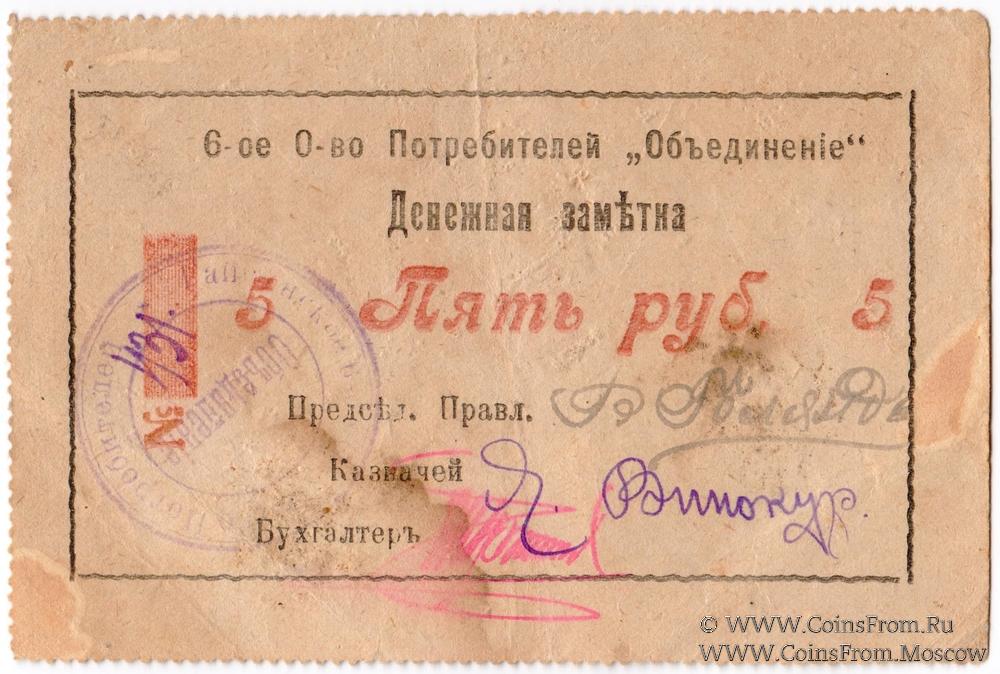 Денежная заметка без даты. Законченная. С печатью на аверсе и реверсе. 6-е Общество потребителей "Объединение".