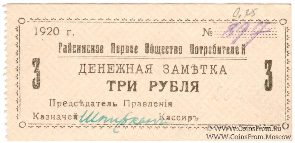 3 рубля 1920 г. (Гайсин)