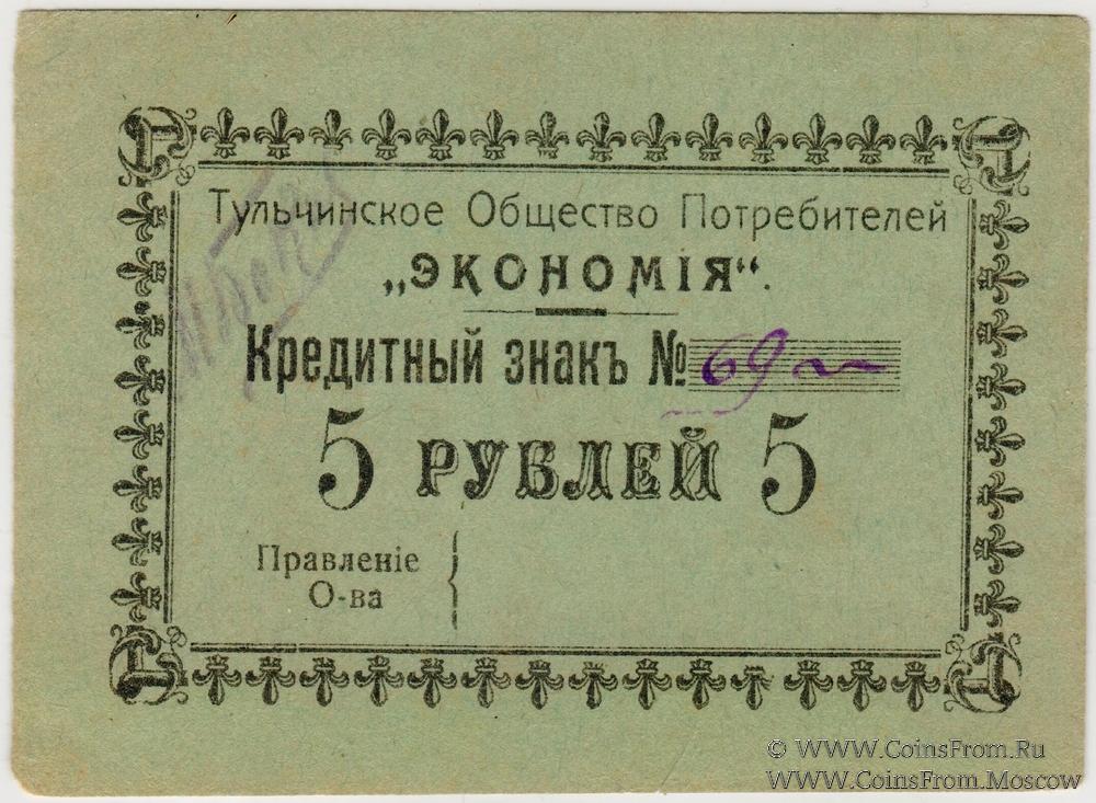 Кредитный знак без даты. Печать на реверсе. Тульчинское Общество Потребителей "ЭКОНОМИЯ".