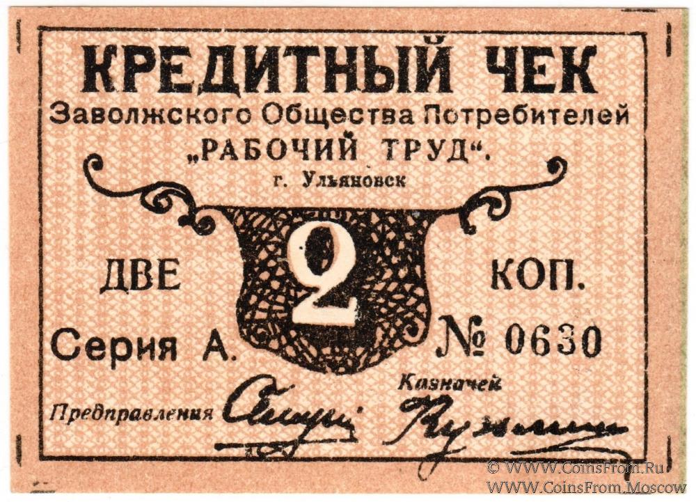 Кредитный чек без даты. Заволжское Общество Потребителей "Рабочий труд".