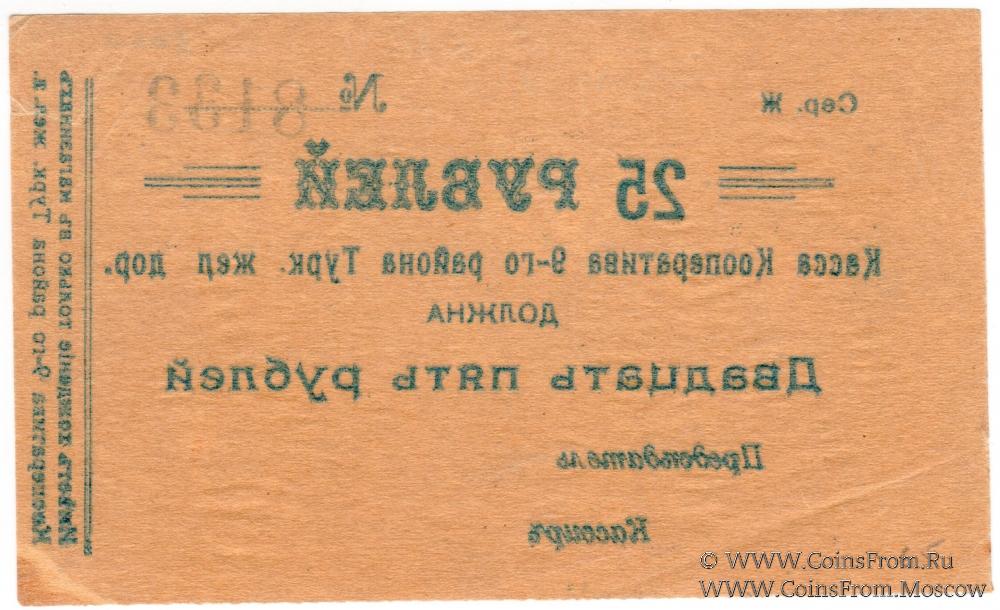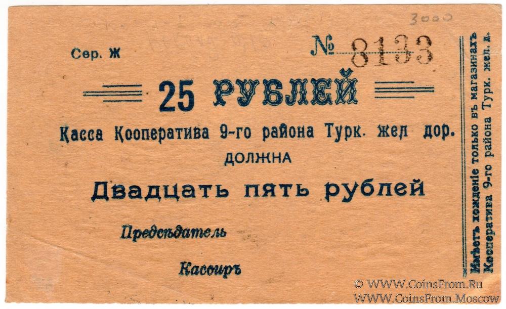Серия Ж. Касса Кооператива 9-го района Туркестанской железной дороги.
