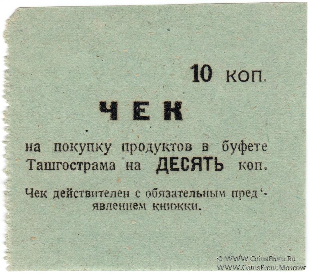 Серо-голубой. Чек без номера, без даты (1918 г.). Буфет треста "Ташгострам" (Ташкентский Государственный Трамвай).