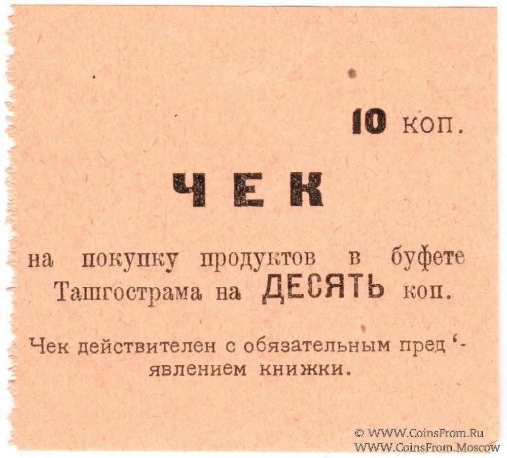 Желто-оранжевый оттенок. Чек без номера, без даты (1918 г.). Буфет треста "Ташгострам" (Ташкентский Государственный Трамвай).