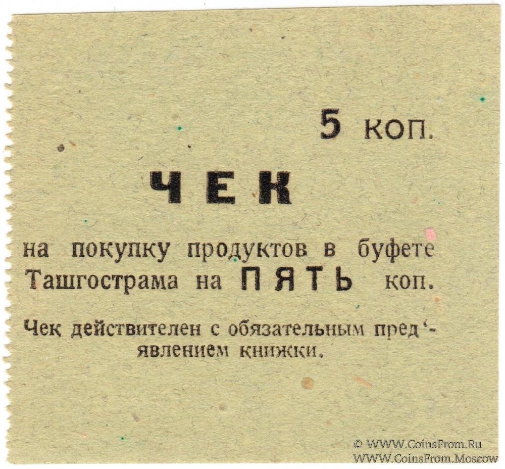 Серо-зеленый. Чек без номера, без даты (1918 г.). Буфет треста "Ташгострам" (Ташкентский Государственный Трамвай).