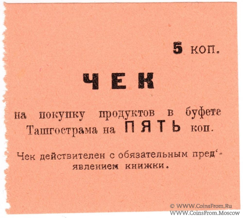 Серо-оранжевый. Чек без номера, без даты (1918 г.). Буфет треста "Ташгострам" (Ташкентский Государственный Трамвай).