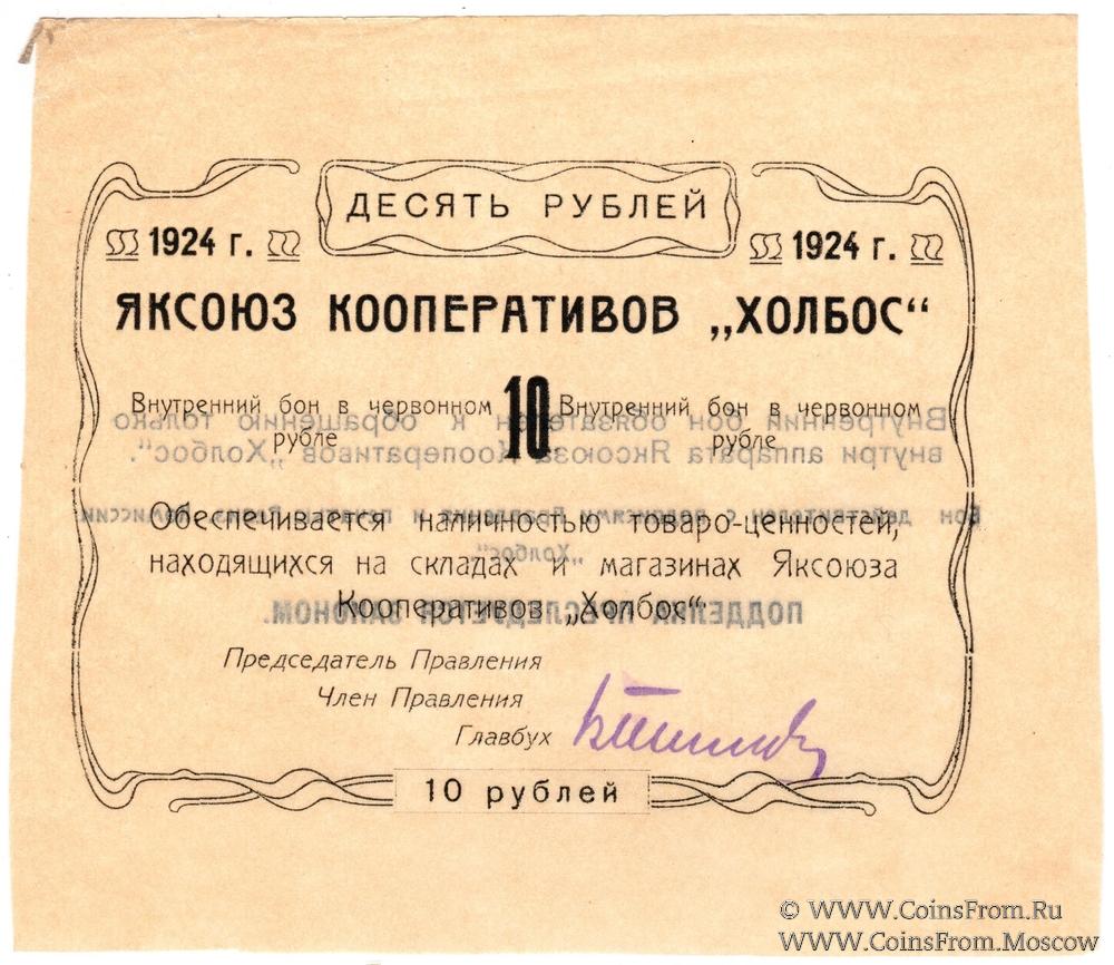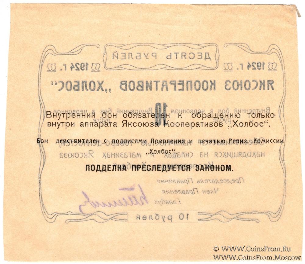 Внутренний бон в червонном рубле. Яксоюз кооперативов "Холбос".