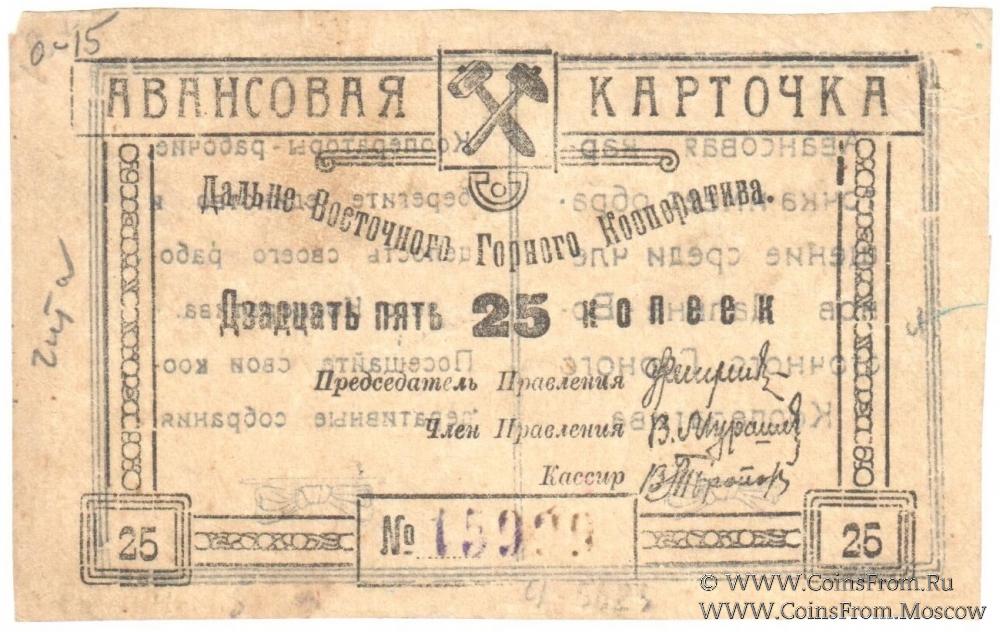 Авансовая карточка без даты. С номером. Дальне-Восточный Горный Кооператив.