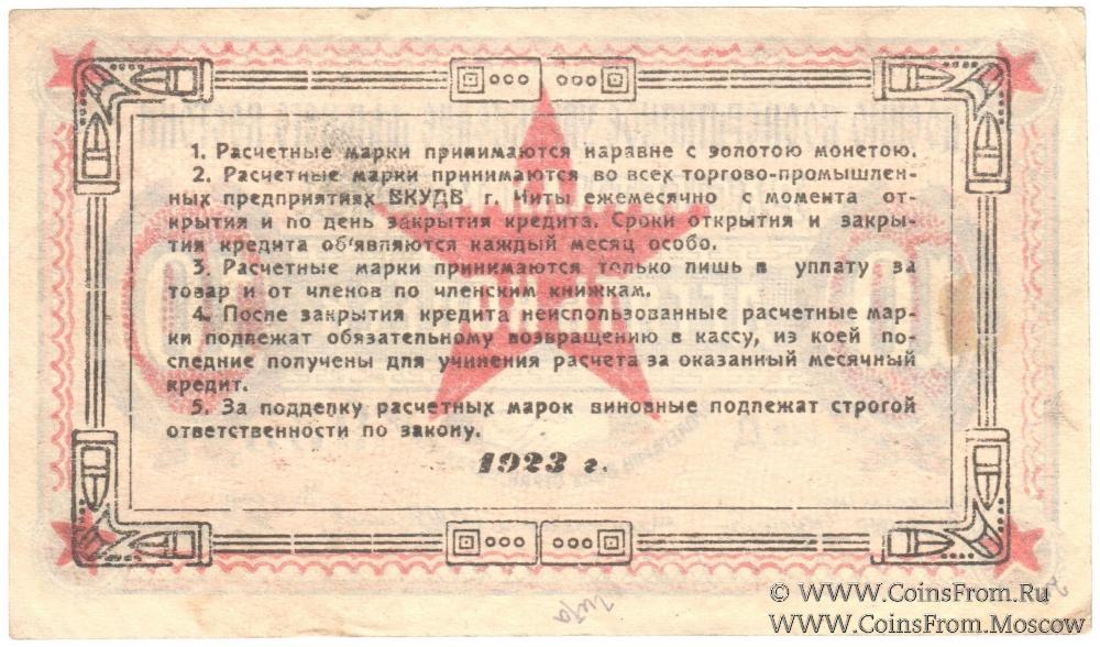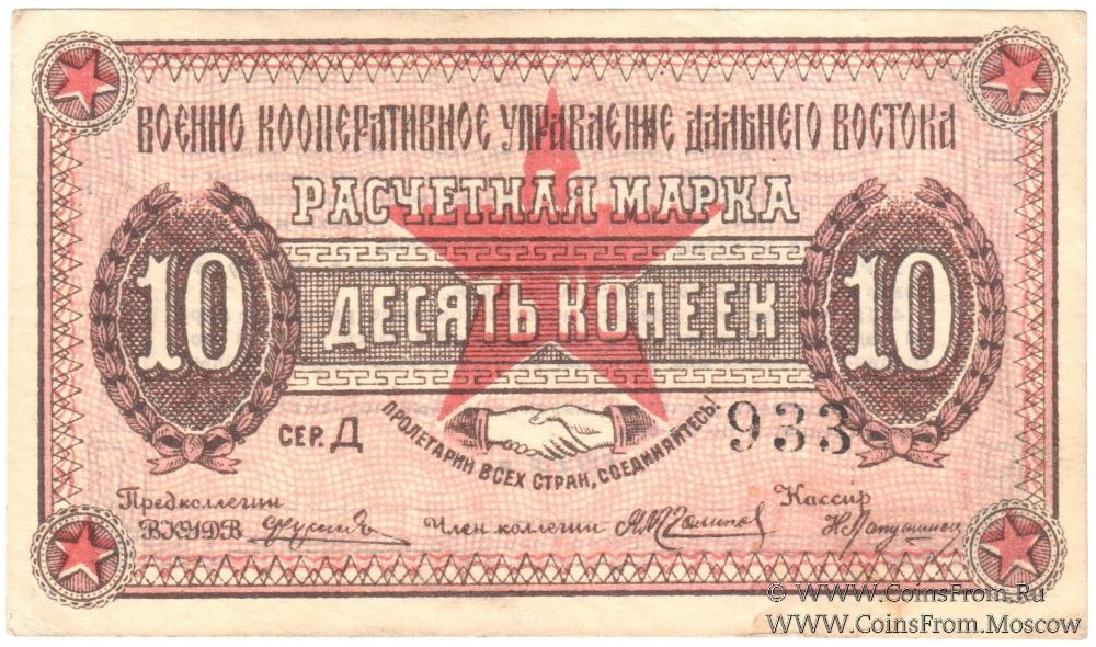 Расчетная марка. Серия Д. БРАК: абкляч на реверсе. Водяной знак. Военно-кооперативное Управление Дальнего Востока.