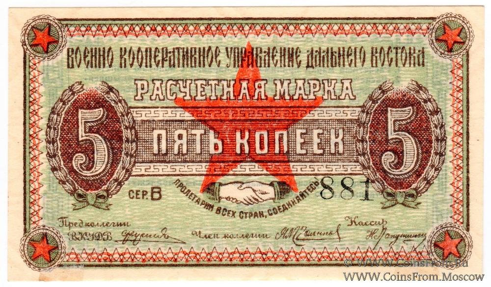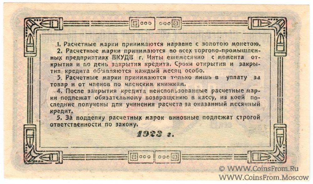 Расчетная марка. Серия В. Водяной знак. Военно-кооперативное Управление Дальнего Востока.