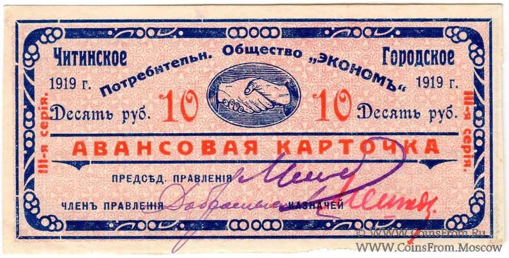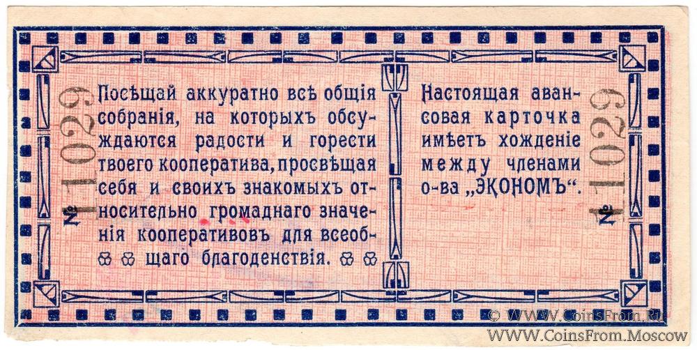 Авансовая карточка 1919 г. Серия III. Без печати ревизионной комиссии на реверсе. Читинское Городское Потребительское Общество "Эконом".