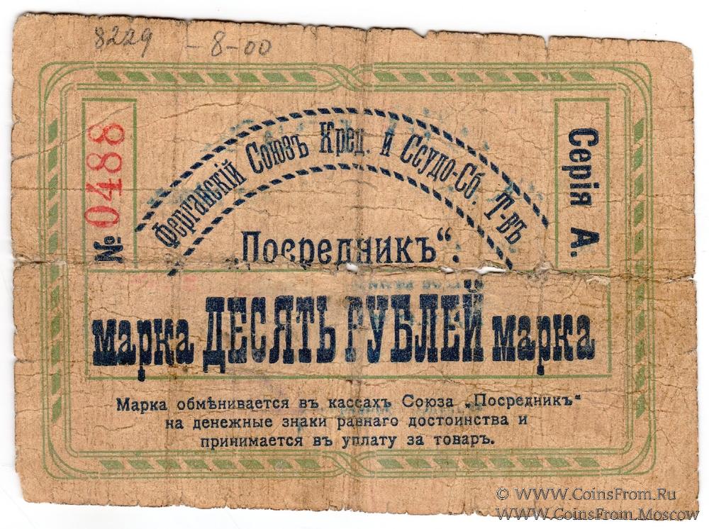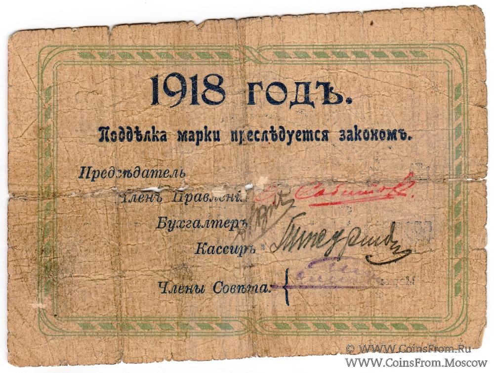 Марка 1918 г. Ферганский Союз Кредитного и Ссудо-Сберегательного Товарищества "Посредник".