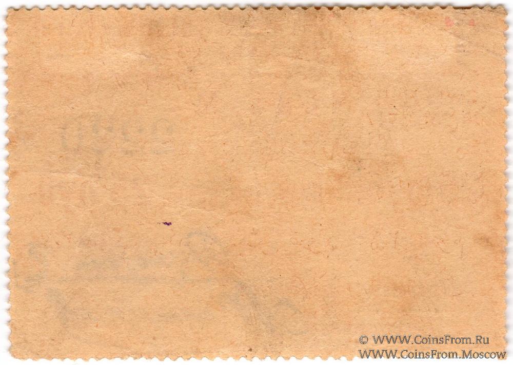 Чек в главную кассу. С зубцами (с четырех сторон), без печати, шрифт красно-оранжевый, подписи факсимиле. Номер 4-значный. Коммуна Кизил-Кия.