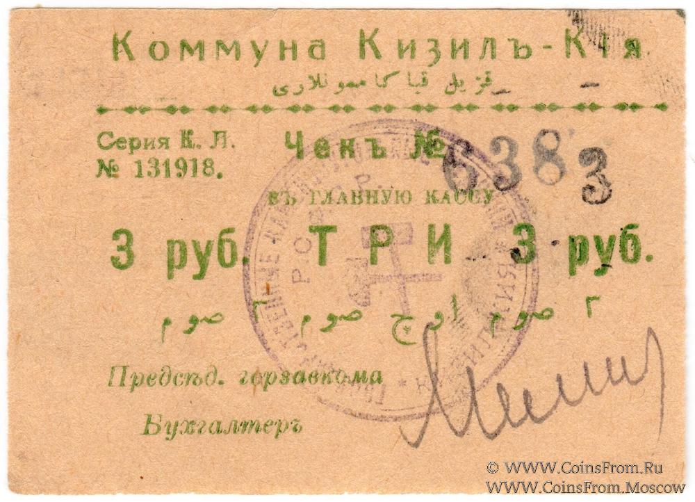 Чек в главную кассу. Без зубцов. С оттиском печати, с подписью. Шрифт зеленый. Коммуна Кизил-Кия.