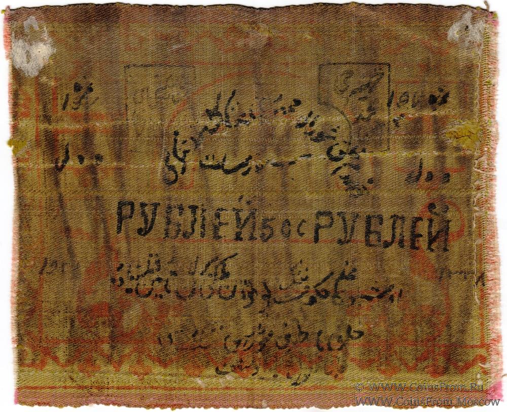 Печати-подписи в фигурных рамках - председатель Совета Народных Назиров (заведующий банком). На реверсе большая звезда.