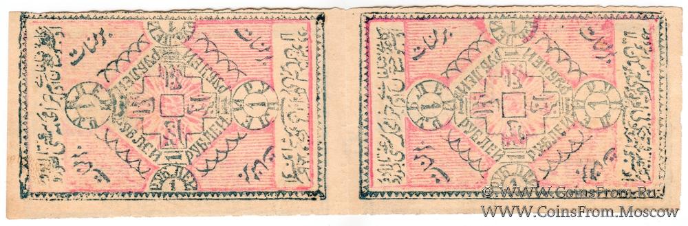 Выпуск 1922 г. (1340 / ١٣٤٠) на бумаге. Бланк. Без водяного знака. Сцепка из 2-х банкнот. Номинал: 1 рубль (аверс) = 10.000 рублей (реверс).