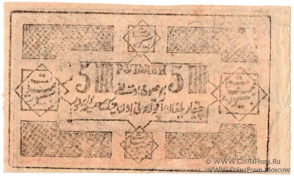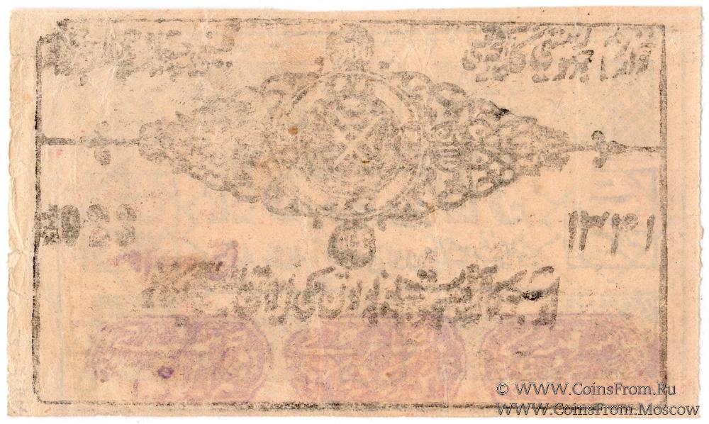 Расчетный знак Хорезмской Народной Советской республики. 500 рублей рублей 1923 (١٣٤١ / 1341) г. Водяной знак - "?". Вариант 1 по форме печатей. Подписи-печати сиреневые.
