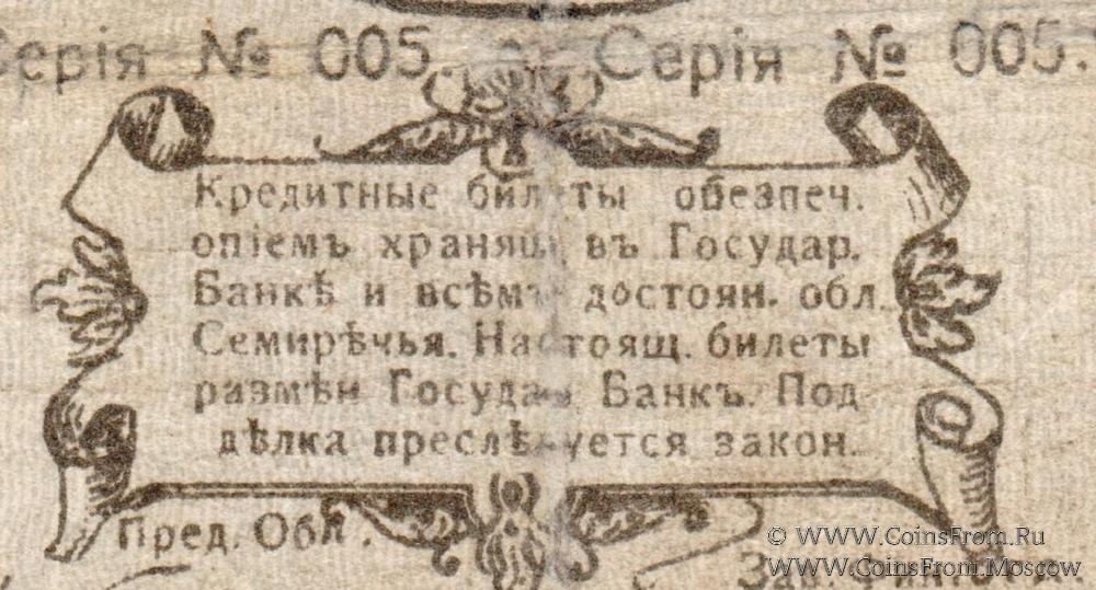 Кредитный билет 1918 г. Выпуск с серией (серия № 005). Семиреченский Облисполком.