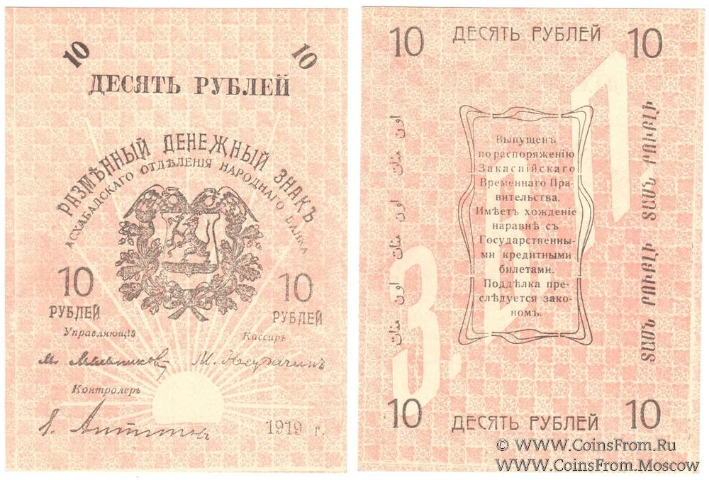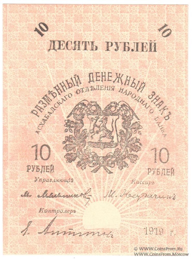 Разменный Денежный Знак 1919 г. Ашхабадское отделение Народного Банка.
