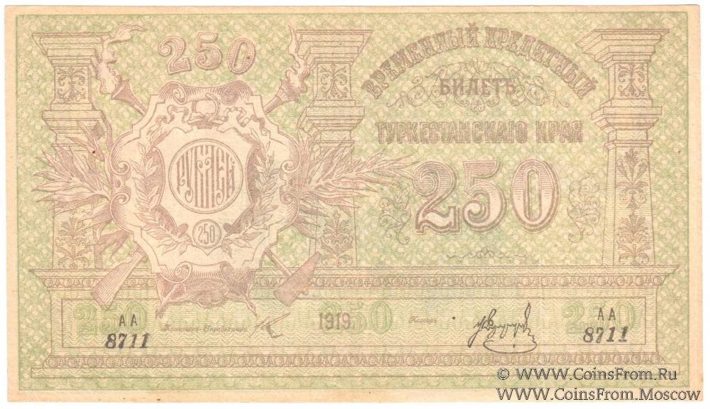 Временный Кредитный билет Туркестанского края 1919 г. Без водяного знака. Шрифт - коричневый. Литера А. Кассир - Фирфаров.