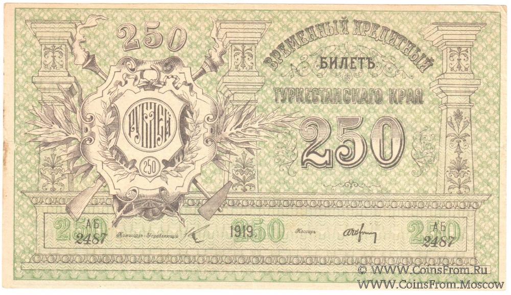 Временный Кредитный билет Туркестанского края 1919 г. Без водяного знака. Литера Б. Кассир - Чухин.