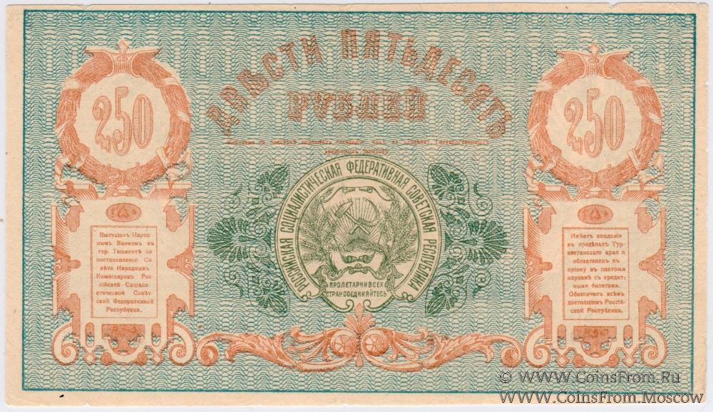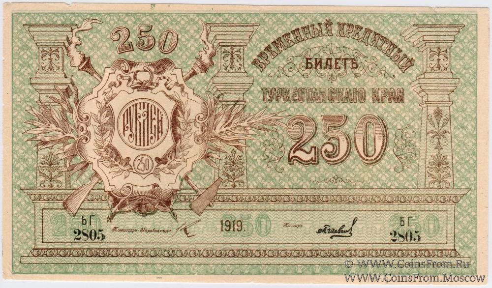 Временный Кредитный билет Туркестанского края 1919 г. Без водяного знака. Литера Г. Кассир - Шевелев.