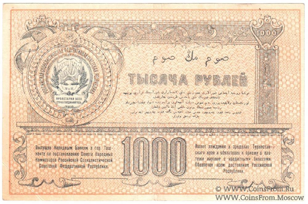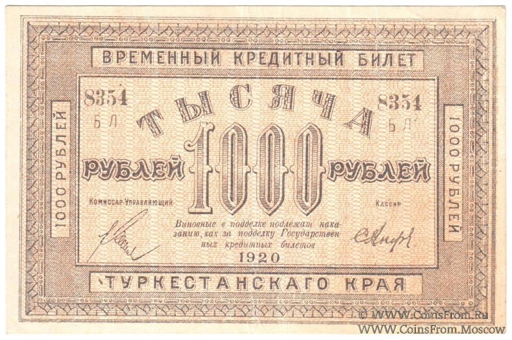 Временный Кредитный билет Туркестанского края 1918 г. Без водяного знака. Бумага толстая. Литера Л. Кассир - Анфиногенов.