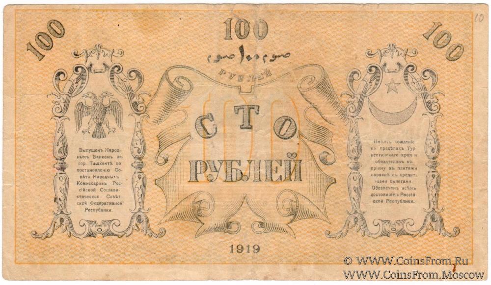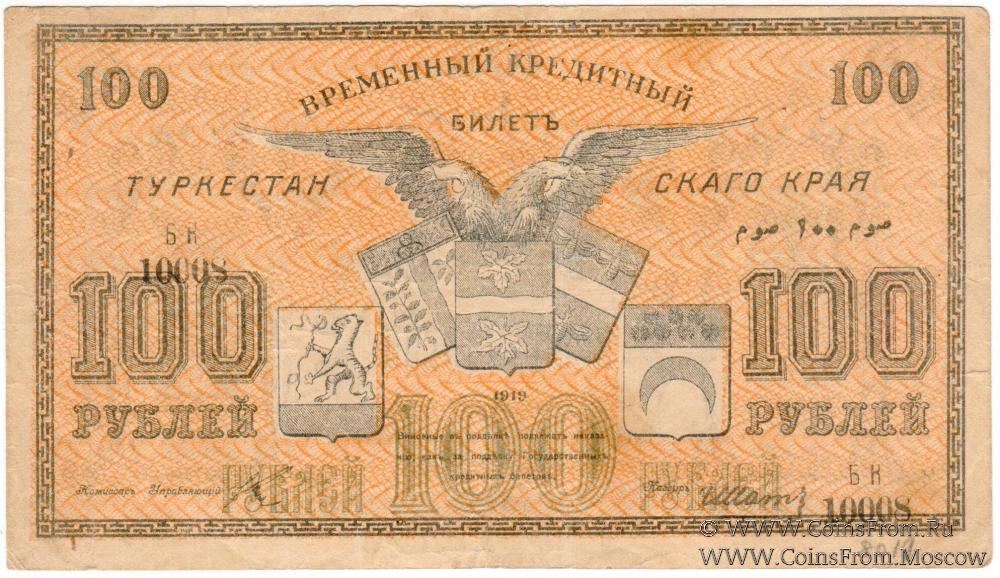 Временный Кредитный билет Туркестанского края 1919 г. Водяной знак - связанные звезды. Номер 5-значный. Литера К. Кассир - Матчаный