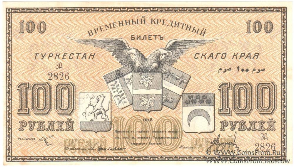 Временный Кредитный билет Туркестанского края 1918 г. Номер 4-значный. Литера А. Кассир - Фирфаров. Бумага белая.