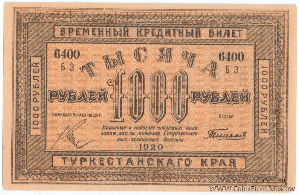 Временный Кредитный билет Туркестанского края 1920 г. Без водяного знака. Бумага толстая. Литера З. Кассир - Тимофеев.