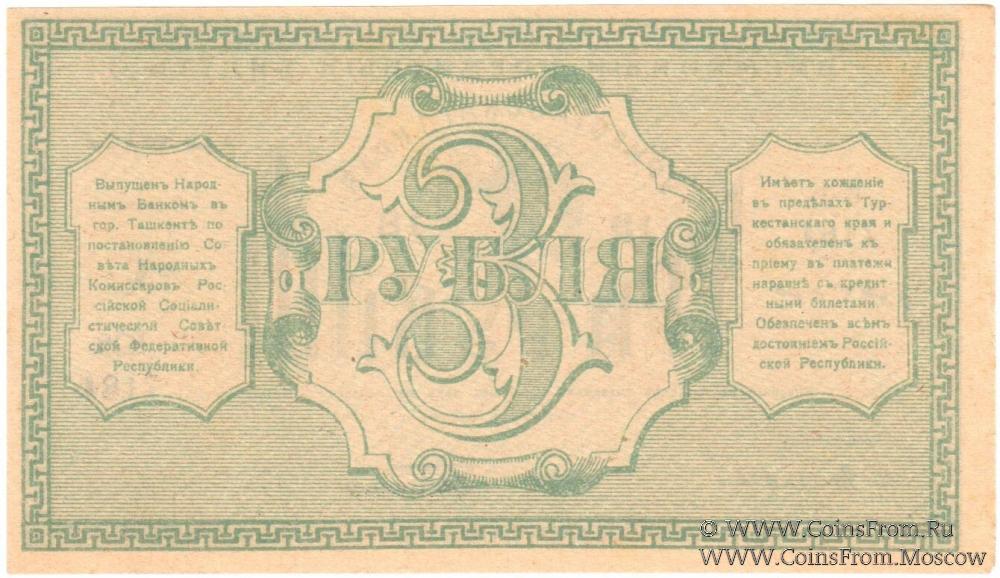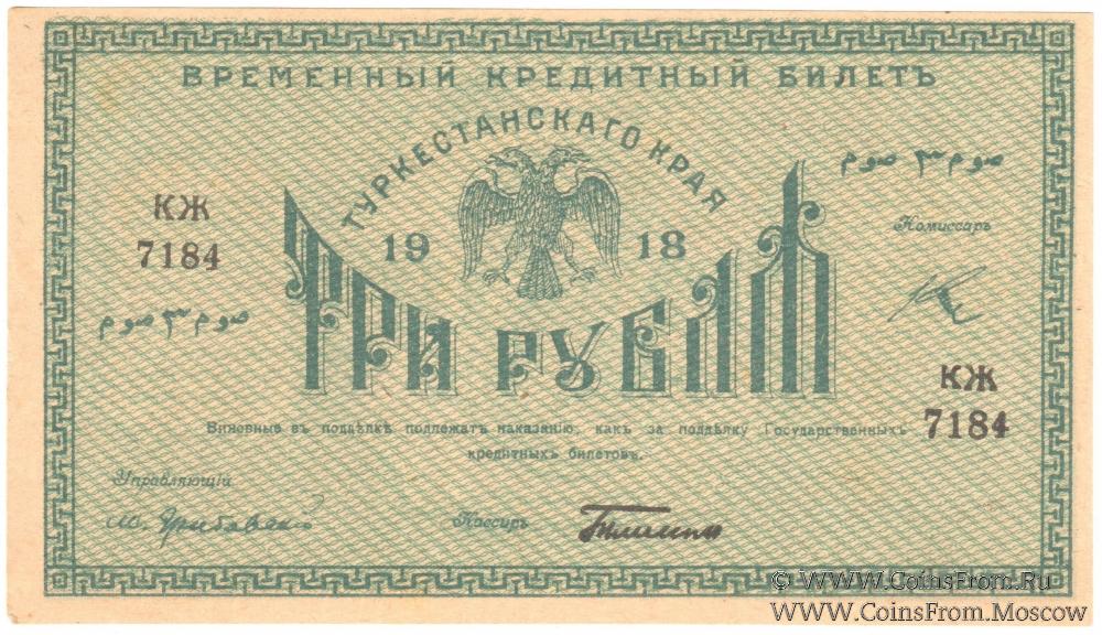 Временный Кредитный билет Туркестанского края 1918 г. Шрифт сине-зеленый. Номер 4-значный. Литера Ж. Кассир - Тесленко.