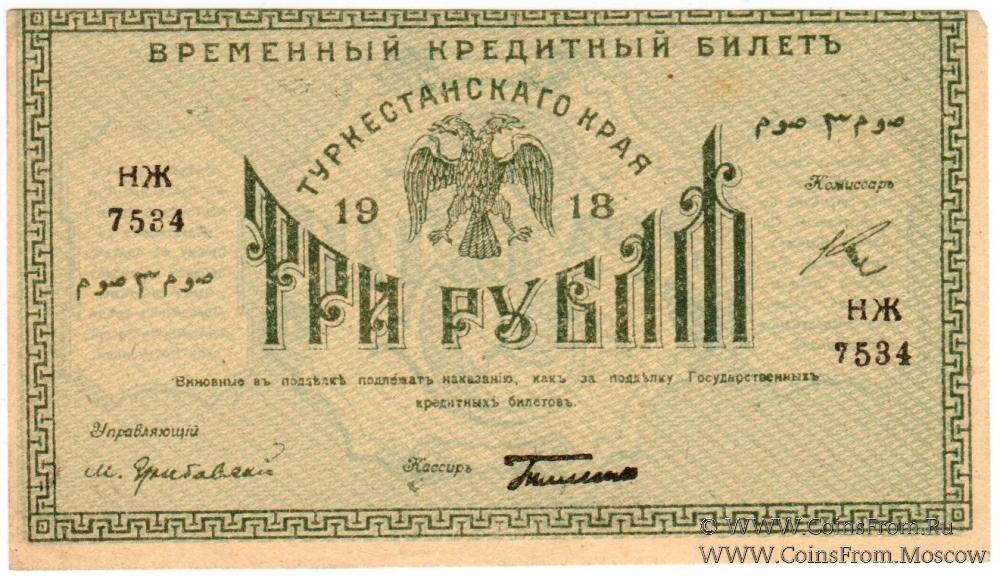3 рубля 1918 г. (Вальдгейм)