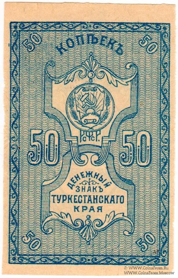 Денежный знак Туркестанского края 1918 г. Народный Банк в г. Ташкенте.