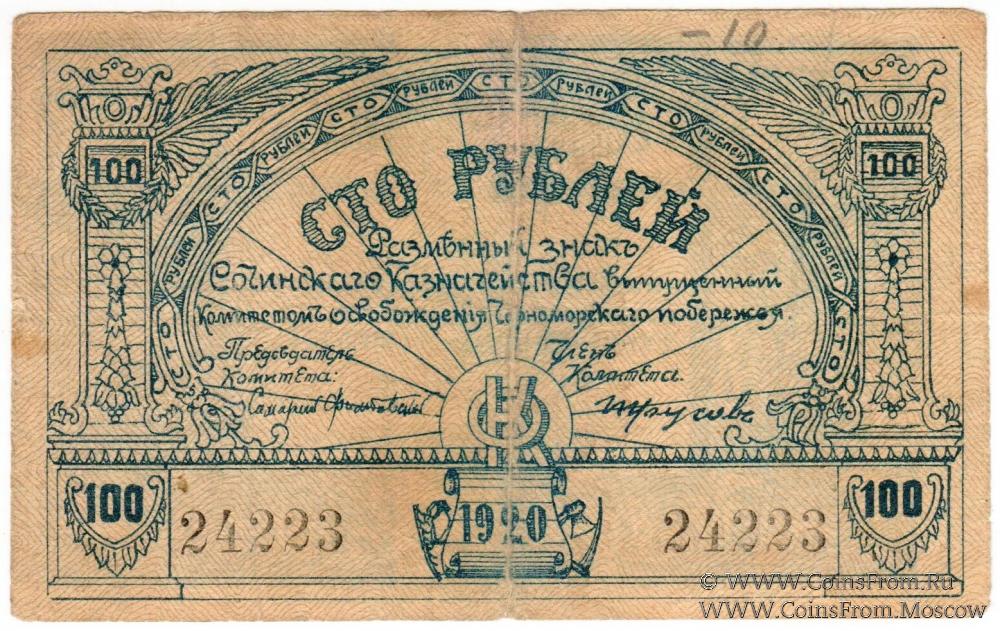 Разменный знак Сочинского Казначейства 1920 г. Номер черный 6 мм. Комитет освобождения Черноморского Побережья.