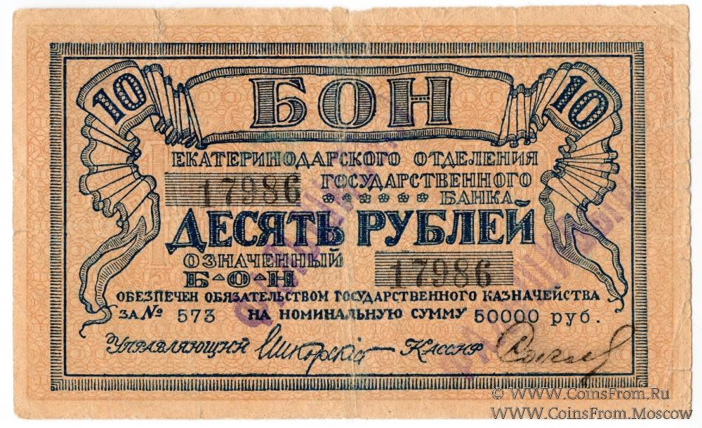Бон обеспечен обязательством Государственного Казначейства на номинальную сумму 50.000 руб. Надпечатка "ФАЛЬШИВЫЙ".