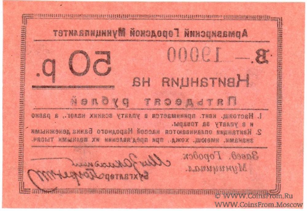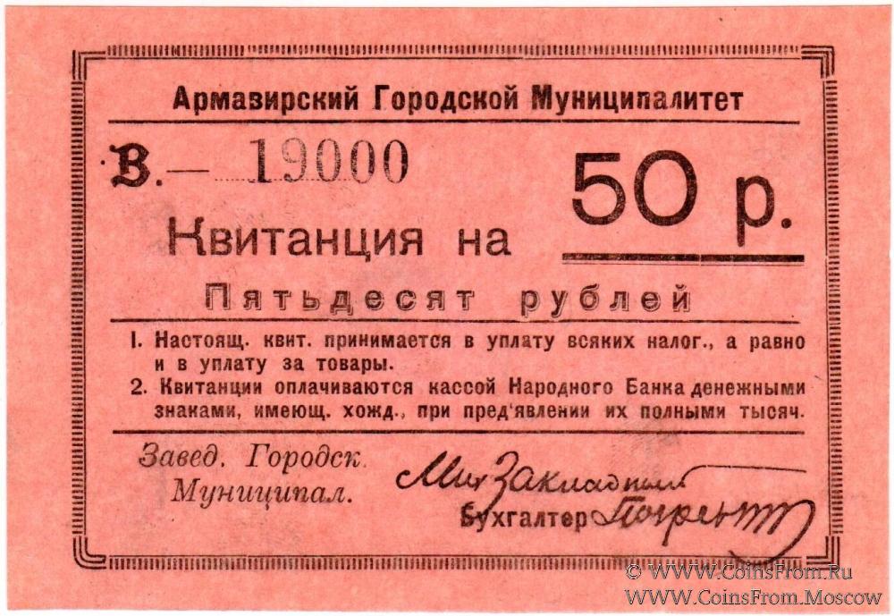 Квитанция 1919 г. Бланк. Армавирский Городской Муниципалитет.