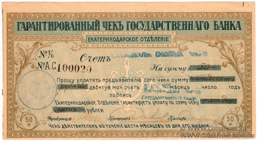 Печать: большой орел временного правительствава (без короны), текст: "Екатеринодарская Краевая Контора Государственнаго Банка *** ".