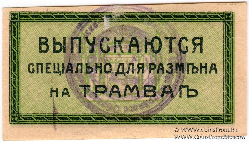 Бон для трамвая без даты (1918 г.). Зеленый. С печатью на аверсе (фиолетовая) и реверсе (сиреневая). Екатеринодарская Городская Управа.