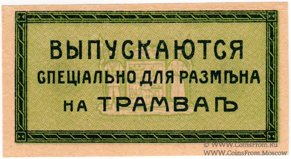 Бон для трамвая без даты (1918 г.). БРАК печати: фон зеленый (как на номинале 2 копейки). Екатеринодарская Городская Управа.