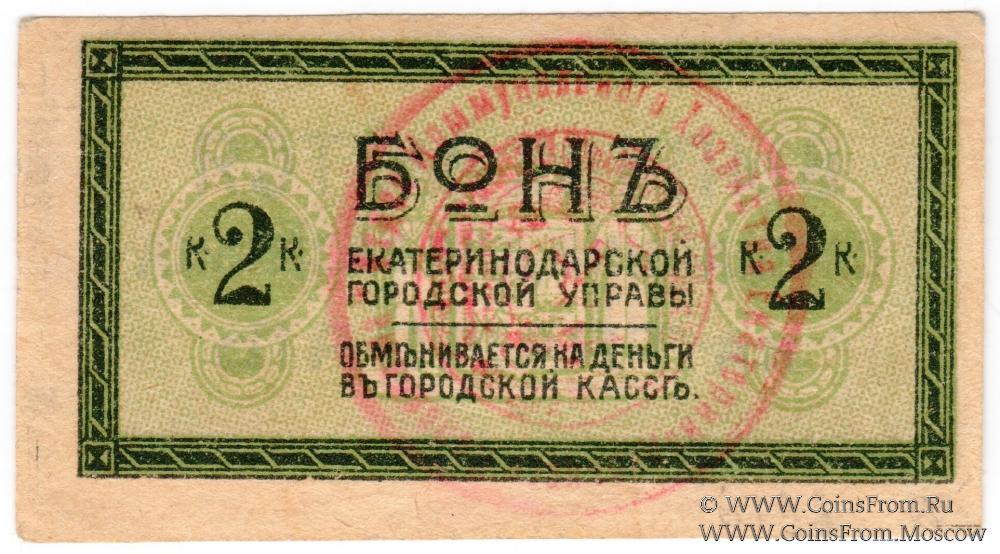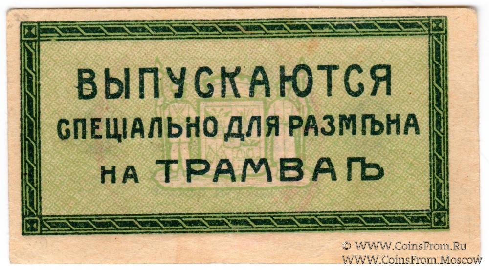 Бон для трамвая без даты (1918 г.). Зеленый. С печатью на аверсе. Екатеринодарская Городская Управа.