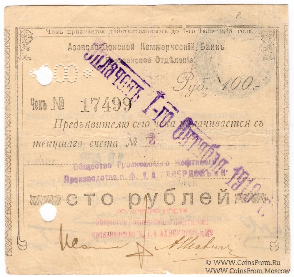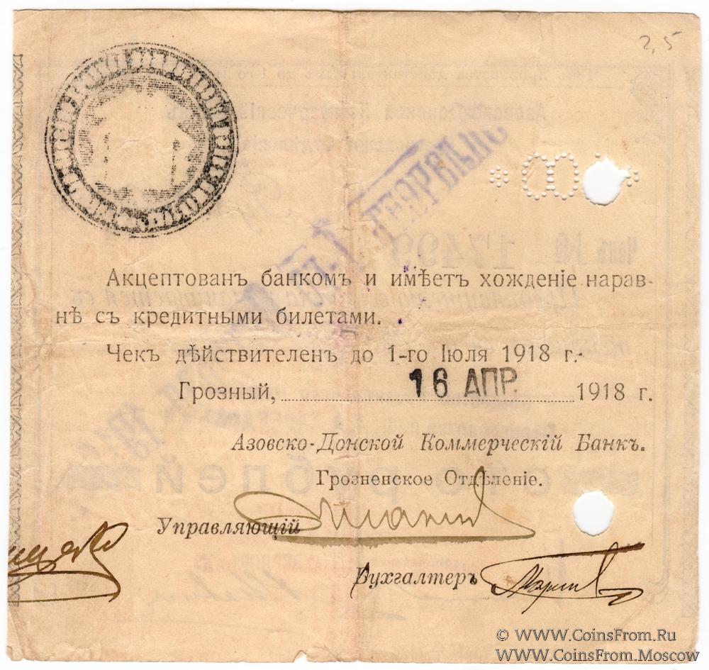 Чек 1918 г. Действителен до 1 июля 1918 г.